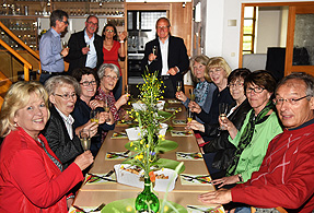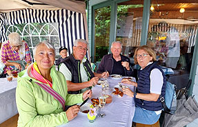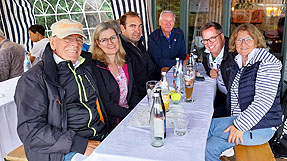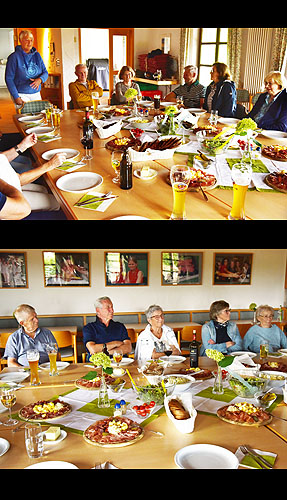 | 9. Oktober 2025 Plauderabend beim Aumiller | Astrid Gnüchtel hat wieder einen TCM-Plauderabend organisiert, der vor allem bei den "Oldies" und passiven Mitgliedern beliebt ist. Aktuelle Themen werden erörtert und so manche vergangene Begebenheit wird gerne aufgefrischt. Er findet im Landgasthof Aumiller ab 18 Uhr statt. Eine spezielle Anmeldung ist nicht erforderlich. Sechzehn vorwiegend ältere Mitglieder des TC Merching sowie Partner und Interessierte fanden sich beim Aumiller ein, wo ein Tisch im Nebenraum hergerichtet war. Auch Jürgen Schewe war dieses Mal dabei und es konnten viele Informationen ausgetauscht und so manche lustige Begebenheit erzählt werden. Natürlich genoss man die exzellenten Küche des Landgasthofs. Auf die Frage, wann man sich wieder treffen will, kam der Vorschlag für ein vierteljährliches Treffen freitags in diesem Lokal gut an, auch der Vorschlag, zwischendurch auch mal den Service eines Frühstücksbüfetts zu genießen. Astrid Gnüchtel will sich weiterhin um diese Treffen kümmern. | ![]() |