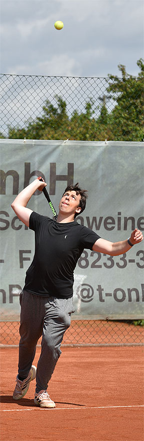 | 22.5.2022 Heim-Punktspiel Herren 1 | Ab 10:00 Uhr spielen unsere Herren das Punktspiel gegen die Gäste vom TSV Schondorf. Ab 13:00 Uhr müssten wieder einzelne freie Plätze zur Verfügung stehen. Die Begegnung begann mit einer Enttäuschung, denn die Schondorfer Gäste rückten nur mit einem Dreimannteam an. Schade für Dragan, der sich den Sonntag freigehalten hatte. Auch mehrere Telefonate konnten keine Abhilfe schaffen, so gingen Stefan, Wolfgang und Thomas zu dritt auf die Plätze. Wolfgang an Position 2 hatte einen stark aufspielenden Gegner, der ihm beim 1:6, 1:6 keine Chancen ließ. Etwas enger ging es bei Thomas auf Pos. 3 zu, der den Verlauf beim 4:6, 3:6 immerhin etwas ausgeglichener gestalten konnte. Dafür trumpfte Spitzenspieler Stefan großartig auf und schlug seinen Gegner mit wuchtigen Aufschlägen und schnellen, langen Bällen klar mit 6:1, 6:2. Das Einser-Doppel war mit Stefan/Wolfgang zwar stark aufgestellt, aber auch die Gäste warfen ihre ganze Spielkompetenz in die Begegnung, so dass sie das einzige Doppel dieser Begegnung knapp mit 6:4 und 6:3 gewannen. So war der unvollständige Antritt der Schondorfer am Ende doch der Garant für ein aus Merchinger Sicht schmeichelhaftes Unentschieden. Aber die Saison beginnt ja erst...... ![]() | ![]() ![]() |