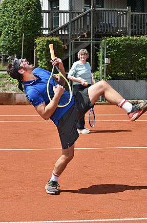| 28.4.2024 Eröffnungsturnier | Unser offizielles Eröffnungsturnier sollte eigentlich am 21.4. stattfinden. Doch bei angesagten 6 Grad Temperatur, Windböen und 60% Regenwahrscheinlichkeit macht das sicher keinen Spaß. Deshalb verschieben wir den offiziellen Start in die Saison auf den 28.4. und starten das Turnier um 13:00 Uhr. Die Verschiebung des Eröffnungsturniers war der richtige Schritt, denn beim Nachholtermin zeigte sich das Wetter von der besten Seite und Hüseyin konnte das Hobbyturnier ohne wetterbedingte Störungen durchziehen. Es ging vor allem darum, sich wieder an den Sandplatz zu gewöhnen, an das fehlende Hallendach, an die Sonne und den Wind. Die Plätze waren von Richie auf einen super Zustand gebracht worden und so befanden sich kaum Löcher oder Tritte im Sandbelag, die die Bälle hätten verspringen lassen können. Breitensportwart Hüseyin schickte die knapp zwanzig Teilnehmer in verschiedenen Mixed- oder Doppel-Teams für jeweils 45 Minuten auf die Plätze, wobei nur Spiele gezählt wurden und es auch Unentschieden gab. Einige noch nicht so versierte Spieler wurden integriert und erfreulicherweise waren auch einige Jugendliche dabei. Leider gab es eine Unterbrechung, weil ein Spieler wegen Verletzung behandelt werden musste. Natürlich wurde zwischendurch zu Kaffee und leckeren Kuchen gerufen, die einige der Tennisdamen spendiert hatten. Nachdem einige Teilnehmer länger gemütlich auf der Terrasse saßen und das eine oder andere Stück Torte genossen, war die Kondition plötzlich fort und es schafften nicht mehr alle, zur letzten Runde anzutreten. Aber gerade an diesem Tag wollte man nichts mehr riskieren – schließlich geht besonders im Hobbysport die Gesundheit absolut vor. | ![]() |