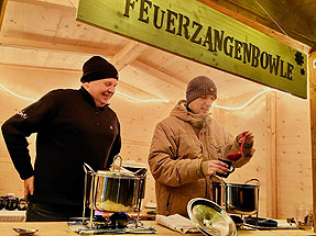 | 1.12.2019 Merchinger Advent | Leckere Feuerzangen-Bowle gab es auch heuer wieder am Stand der Tennisler auf dem Schulhofgelände. Laura und Max und ihre Freunde legten sich mächtig ins Zeug, so dass an ihrem von vielen Händen liebevoll geschmückten und mit modernster Technik publikumswirksam präsentierten Stand ein Topf nach dem anderen geleert wurde. Aber während der eine Topf ausgegeben wurden, brannte im anderen schon wieder der charakteristische Zuckerhut zum "Finish" des Getränks. Es stellte sich als ratsam heraus, ohne PKW zum Schulhof zu kommen, denn nach der zweiten Tasse der überaus leckeren Bowle konnte man die Fahrtüchtigkeit durchaus in Zweifel ziehen. Das süße Getränk hatte es nämlich ganz schön in sich. Viele Mitglieder und Freunde des TC Merching trafen sich zu einem netten Plausch und ganz nebenbei kam ein nettes Sümmchen für einen guten Zweck zusammen. Danke an die Standbetreiber und an alle, die bei der Vorbereitung und beim Abbau geholfen haben! | ![]() |