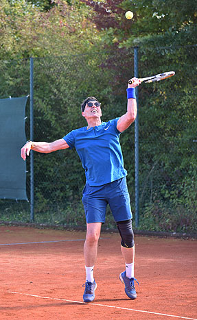 | 1.8.2021 Letztes Punktspiel der Herren | Herren gegen SV Bergheim 5:1 Mit einem letzten deutlichen Sieg konnten unsere Herren ihre Spitzenstellung in der KK4 untermauern. Obwohl eine aus Urlaubsgründen ersatzgeschwächte Mannschaft zum SV Bergheim II fuhr, lief es in den Einzeln bei ständigem Nieselregen recht gut an. Florian, Hans und Thomas gewannen ihre Einzel hochüberlegen. Einzig Siggi H. konnte gegen einen mehr als 50 Jahre jüngeren Gegner nicht punkten. Die Doppel dagegen waren wieder eine klare Sache für unsere Jungs. Florian/Thomas holten sich den Matchpunkt mit einem klaren 6:3, 6:2 und Hans/Siggi setzten mit ihrem 6:0, 6:2 sogar noch einen drauf. So ist man wirklich bestens gerüstet für die nächsthöhere Klasse. Gratulation zum Aufstieg! | ![]() |