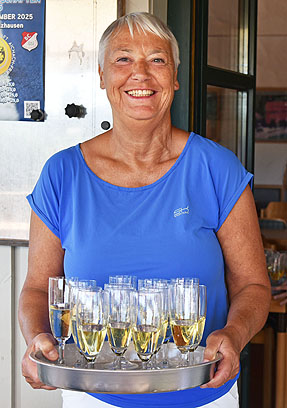 | 05.08.2023 Clubinternes Champagner-Turnier und Sommerfest | Auch heuer findet wieder das vereinsinterne Champagner-Turnier statt. Beginn: 13:00 Uhr. Den Rahmen des Turniers und die Preise übernimmt unser Hauptsponsor ChamPruss aus Merching. Hier steht der Spaß im Vordergrund und Teilnehmer aller Spielstärken sind dazu eingeladen. Bitte tragt euch in die aushängende Liste ein oder nehmt Kontakt mit Niklas auf. Abends um19:00 Uhr beginnt dann unser Sommerfest. Breitensportwart Niklas hat einige interessante Programmpunkte für den bunten Abend vorgesehen. Hauptsache, ihr seid alle dabei und habt Spaß! Auch dazu wird eine Liste ausgehängt, in die ihr eure Teilnahme eintragen könnt. Wir freuen uns auf ein fröhliches Fest mit vielen Teilnehmern. Das clubinterne Champagnerturnier lockte wieder viele TCM-Mitglieder auf die Anlage. Zwar verhieß der Wetterbericht nichts Gutes, aber am Ende gingen die Spiele bei sehr angenehmen Temperaturen ohne Regen über die Bühne. Clubchefin Sabine begrüßte die Teilnehmer und mit Isabelle und Marcel auch Vertreter unseres Sponsors ChamPruss, die einen großen Karton mit dem edlen Getränk mitbrachten. Turnierleiter Sigi musste recht flexibel sein, denn die Anmeldedisziplin lässt halt immer noch zu wünschen übrig. So kamen vier Teilnehmer mehr als angemeldet waren. Jeder Spielwillige zog ein Los mit einer Platznummer und einer Teambezeichnung und so trafen sich die zusammenspielenden Teams auf den Plätzen. Auf diese Weise kamen sowohl Mixed, Damen- und Herrendoppel zusammen. Wo die Spielstärke nicht so ganz zusammenpasste, musste halt etwas Rücksicht genommen werden, was auch geschah. Nach zwei knapp einstündigen Runden traf man sich auf der Terrasse zu Kaffee und Kuchen und zu ersten Gesprächen. Besonders interessiert waren die Spieler des TCM an der chinesischen Familie, die sich als Neumitglieder vorgestellt hatten und die über einen Expresstennis-Kurs zum Club gefunden hatten. Besonders angetan waren viele von der süßen dreijährigen Tochter der Neumitglieder. Erfreulich war auch, dass einige Jugendliche unter den Teilnehmern waren, die zeigten, dass sie durchaus mit den arrivierten Spieler mithalten können. So konnte man tolle Ballwechsel beobachten, die mit Spaß und Begeisterung ausgespielt wurden. Gegen 17 Uhr war der sportliche Teil des Tages beendet. Man stieß mit einem Glas Champagner auf das gelungene Turnier an. Gottseidank erst dann setzte leichter Regen ein. Die Spieler aber machten sich fertig für das anschließend stattfindende Sommerfest. Es war zwar kalendarischer Sommer, aber die Temperaturen sagten etwas anderes und so fiel schnell die Entscheidung, im Inneren des Clubheims zu feiern. Richie stellte sich an den Grill und produzierte Grillfleisch und Würstchen am laufenden Band. Viele der Gäste hatten Salate und Nachspeisen mitgebracht und so konnte man aus einem üppigen Büfett wählen. Daneben wurde eine kleine Siegerehrung durchgeführt, bei der die Sieger standesgmäß mit Champagnerpreisen bedacht wurden. Als Erstplatzierte ließen sich Hans und Hermann feiern. Sie hatten drei Siege aufzuweisen vor Eva, die mit zwei Siegen und einem Unentschieden und Renate mit zwei Siegen auf die Plätze kamen. Dann nutzte Sabine die Gelegenheit, einem rüstigen Oldie zum runden Geburtstag zu gratulieren. Anschließend saß man noch lange zusammen, freute sich, dass die ehemalige Clubheim-Chefin Siegi sowie einige der passiven Clubmitglieder wieder mal dabei sein konnten. Da verzichtete man sogar auf eine Spielrunde, die als Backup gegen aufkommende Langeweile vorbereitet worden war. ![]() | ![]() ![]() ![]() ![]() ![]() ![]() |