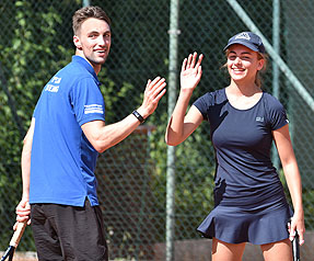 | 31.5.-2.6.2024 Mixed-Kreismeisterschaften in Dasing | Wer sich zutraut, in einem regional starken Feld als Team im Mixed anzutreten, der sollte sich bei den Kreismeisterschaften in Dasing anmelden. Es wird dort in drei Tagen ein Mixed-Wettbewerb mit LK-Wertung ausgetragen und zwar voraussichtlich in folgenden Konkurrenzen: Mixed Aktive mit LK 1 bis 25 Mixed Aktive mit LK 18 bis 25 Mixed 40+ mit LK 1 bis 25 Mixed 40+ mit LK 18 bis 25 Gespielt wird im K.0.-System auf zwei Gewinnsätze inklusive No-Ad-Regel – bei Einstand entscheidet also der nächste Punkt. Es ist geplant, für jede Altersklasse eine Nebenrunde anzubieten – sofern das Wetter es zulässt – damit jeder Teilnehmer zumindest zwei Matches bestreiten kann. Es wird auch wieder einen TeamRace-Wettbewerb geben, also eine Vereinswertung. So wird es für die Tennisvereine interessant, möglichst viele Teilnehmer zu melden, denn es gibt nicht nur Punkte für die Sieger, sondern auch für jeden Starter bei den Mixed-KM. Also Anmelden zum sportlichen Mixed-Vergleich und vielleicht die eigene LK noch etwas aufbessern! Trotz des schlechten Wetters konnte das Turnier fast komplett im Freien durchgeführt werden. Einzelheiten und Ergebnisse findet ihr unter https://www.tennisgem-aic-fdb.de/mixed-km | ![]() |