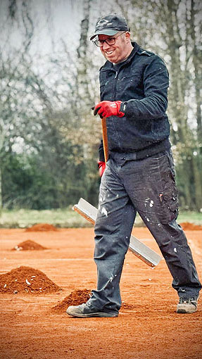 Jetzt nur noch einige Restarbeiten an den Plätzen sowie Netze aufhängen - dann sind die Plätze spielbereit.